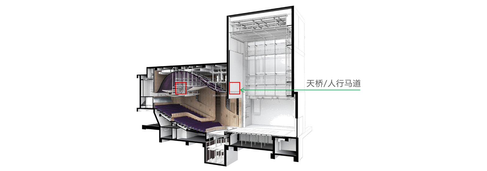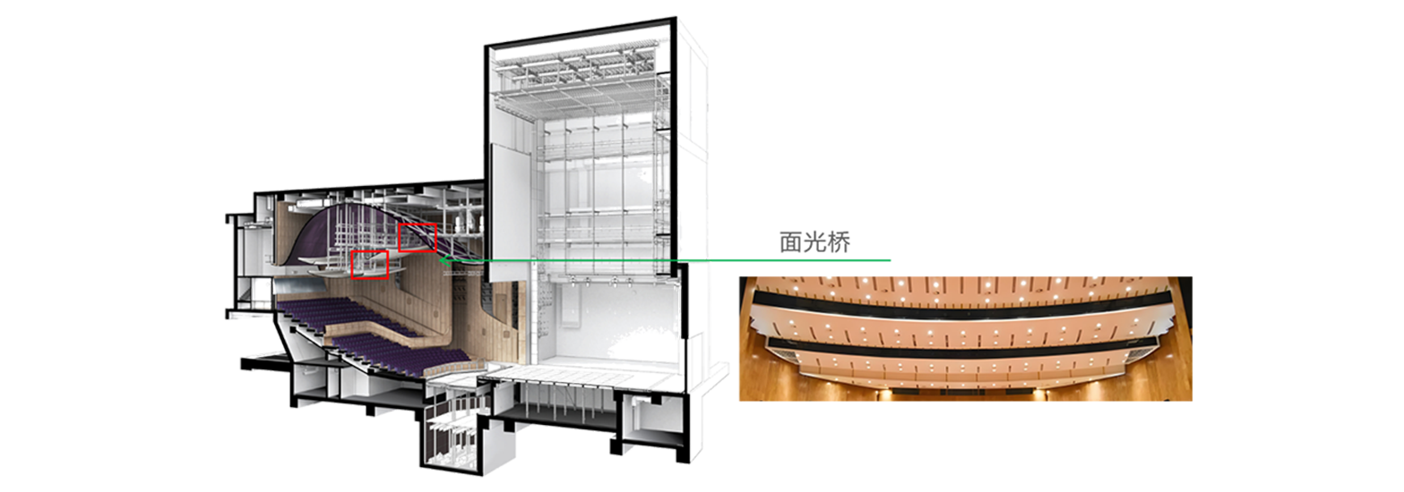 • 面光桥宽度不应小于1.20m ,净高度不应低于1.80m, 面光桥与吊顶内空间宜做声学处理。
