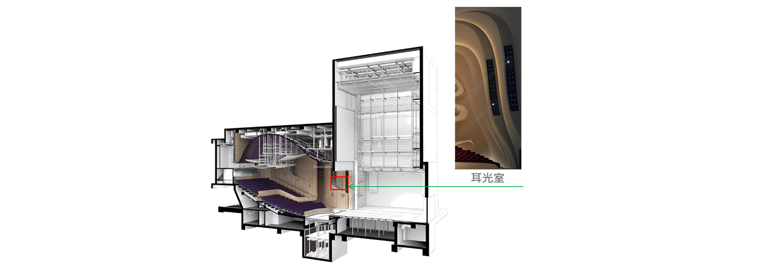 • 耳光室宜分层设置,且第一层底部应高出舞台面2.50m。